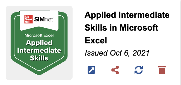 Digital Credentials are sharable badges and certificates that can signal instructors, classmates, and future employers to your mastery of Microsoft Office applications. There are a number of different types of credentials to earn in SIMnet. You can view the list of available Digital Credentials :point\_right:[here](https://certificates.simnetonline.com/issuer/18189/groups) or view the application pathway collections :point\_right: [here](https://certificates.simnetonline.com/issuer/18189/pathways).